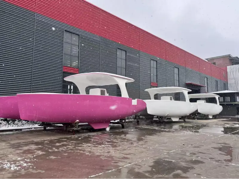 Gdy w 2025 roku zaczęły spadać pierwsze płatki śniegu, zasygnalizowało to nadejście Świąt Bożego Narodzenia. Podczas pierwszych opadów śniegu w 2025 roku pracownicy firmyLawada®pracowali razem, pchając jedną za drugą 10-metrowe duże łodzie, aby poruszać się po śniegu. Na tle śnieżnej scenerii szczególnie wyraźnie wyróżniał się opływowy kadłub tej łodzi – był to katamaran Lawada® 10,28m!